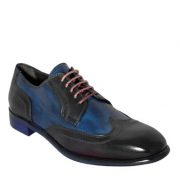 Derby con coda di rondine, pelle vitello tamponata a mano, fondo cuoio cucito a mano.